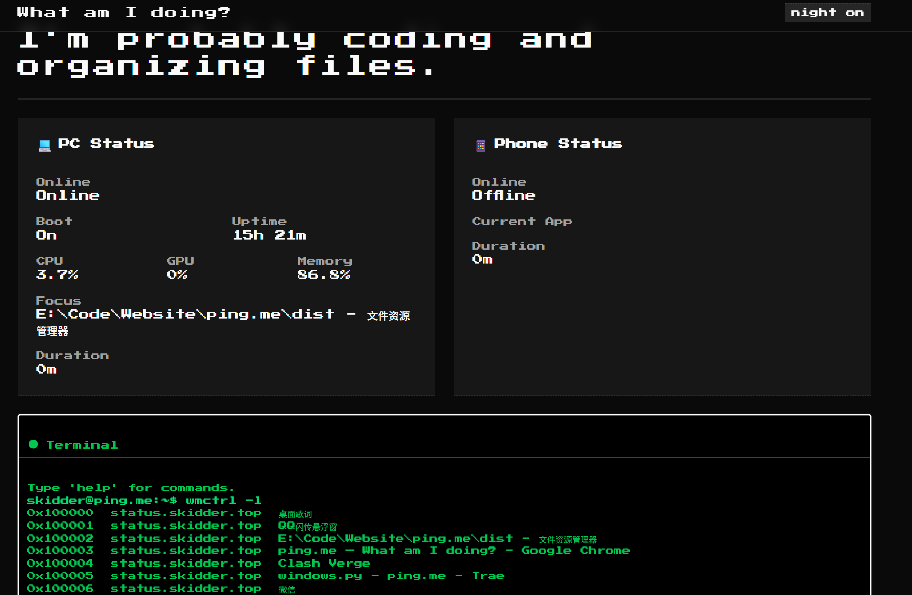 它可以根据运行在我的电脑或者手机上的daemon进程实时更新我的工作状态(以方便他人视奸)
